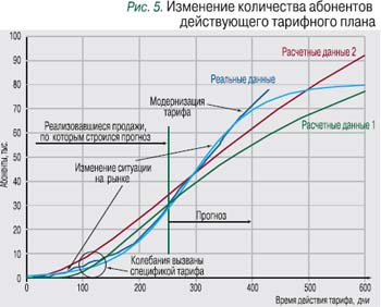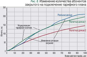 Для моделирования изменения числа абонентов по отношению к отдельным тарифным планам (рис. 5, 6) пользуются также следующими уравнениями*: